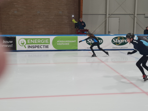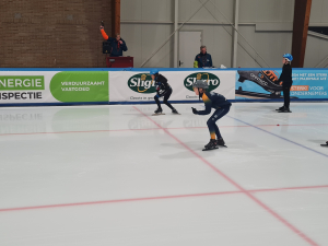 Helaas dit weekend geen ijstrainingen. Maar we laten het schaatsen niet helemaal los. In de fotocarrousel hiernaast vind je een aantal startfoto's van de clubwedstrijd. Misschien sta jij er ook wel tussen?