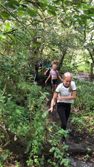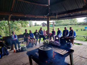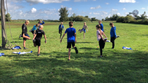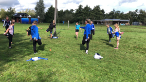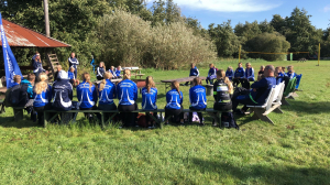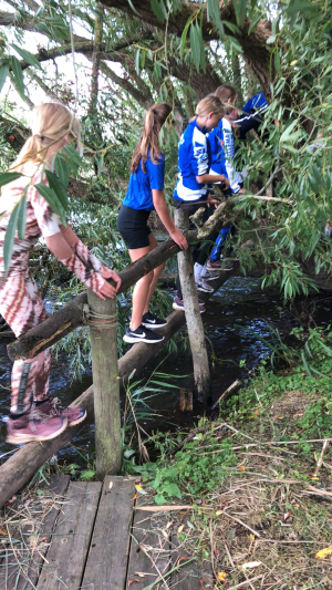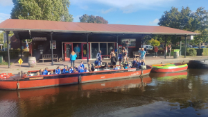 En dat die aspecten aan bod kwamen! Er gingen maar liefst 26 leden mee en nog 5 trainers/begeleiders. We gingen dus met 31 man op pad. Om het trainingsweekendgevoel in stand te houden gingen we eerst met de boot naar het Kameleon-eiland vlakbij Terherne. Voor veel nog een beetje onwennig, sommige mensen kenden anderen, anderen kenden nog niemand. Altijd spannend. Daarnaast was het ook nog spannend wat het weer deed. Er stonden wat buien op het programma. Zouden we daar last van krijgen? Nou ja, hindert ook niets, want vies worden we toch!